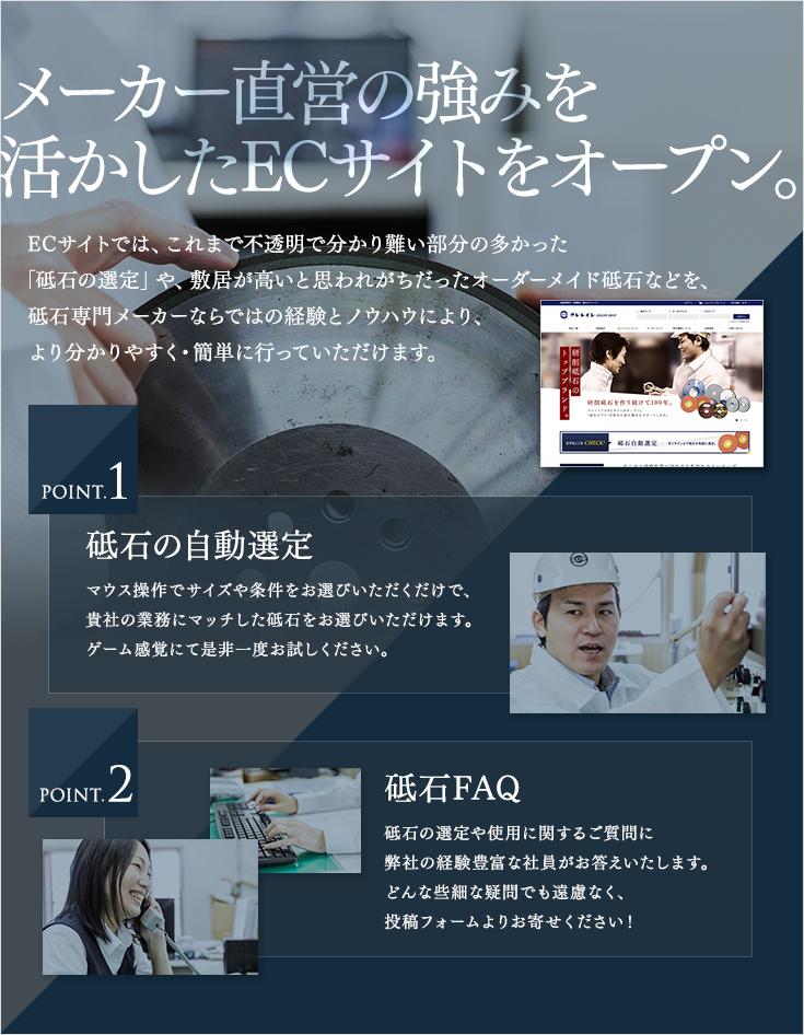 豊かな経験により蓄積されたノウハウが、砥石だけでなくその使用方法までトータルでご提案いたします。